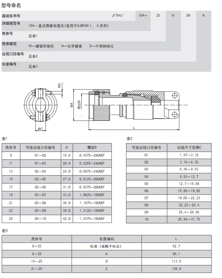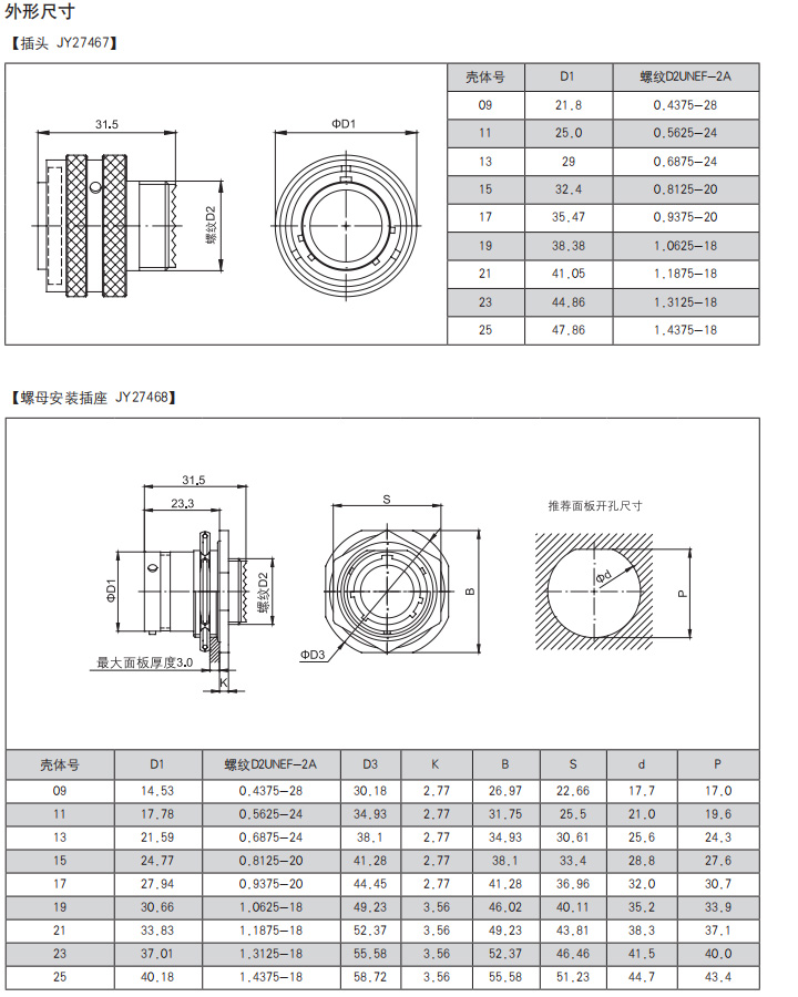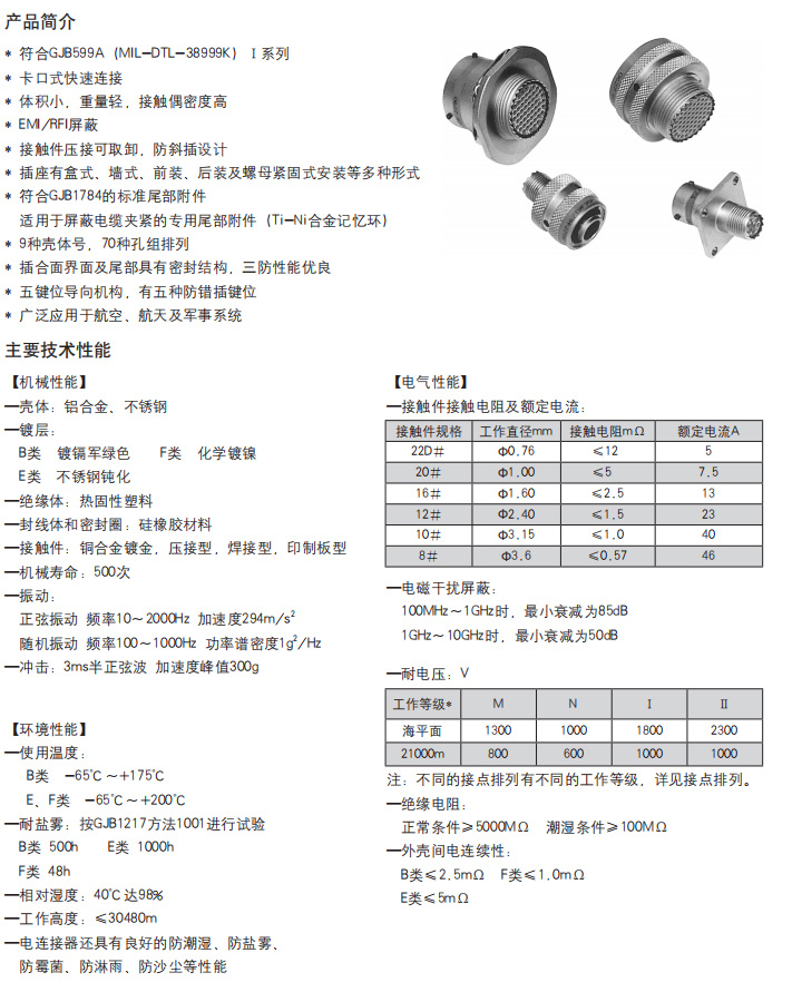 *  符合GJB599A(MIL-DTL-38999K)Ⅰ系列