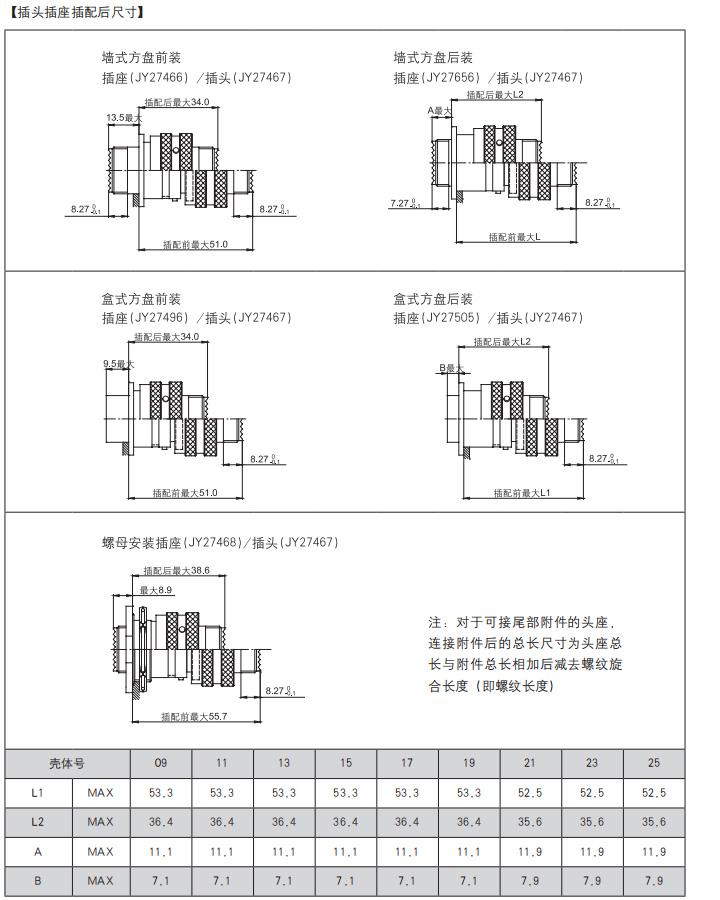 *  插座有盒式、墙式、前装、后装及螺母紧固式安装等多种形式