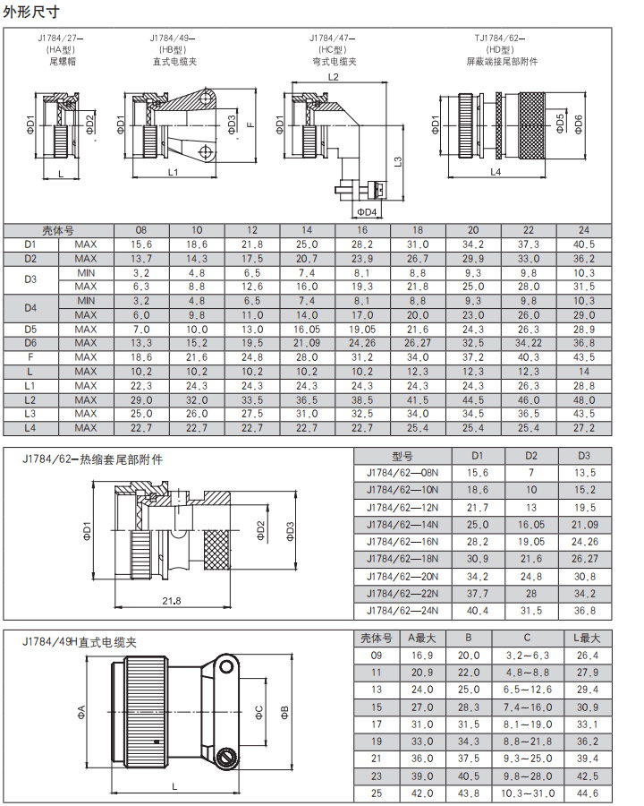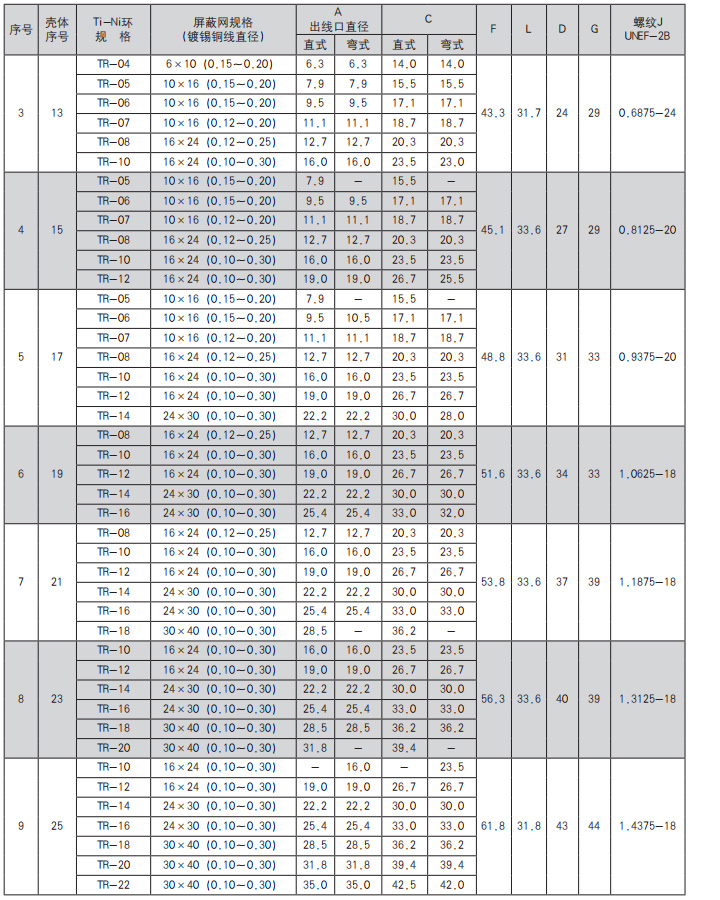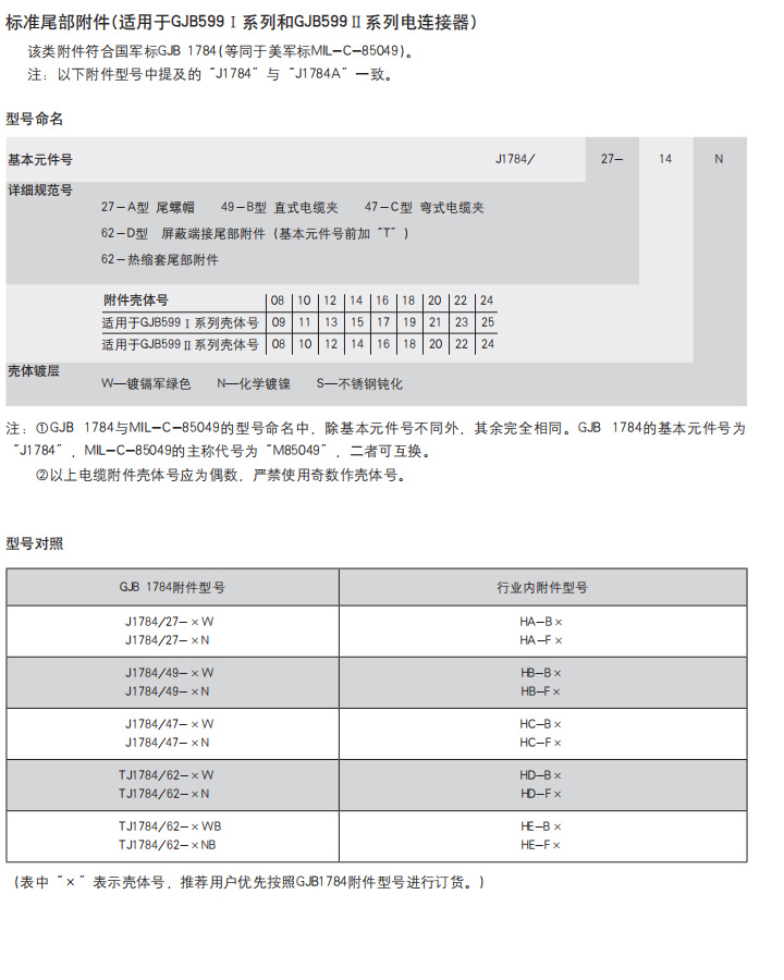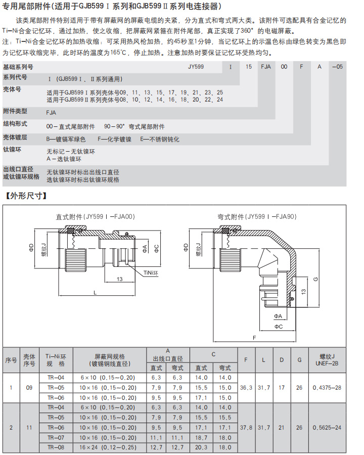 *  符合GJB1784的标准尾部附件、适用于屏蔽电缆夹紧的专用尾部附件(Ti-Ni合金记忆环)