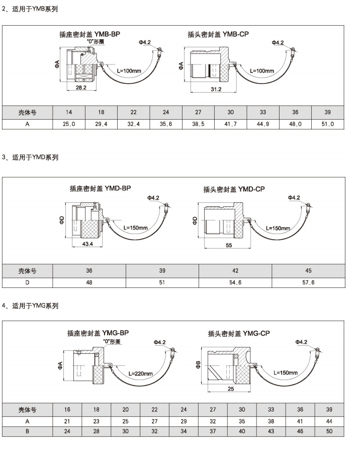 用于YMA、YMB、YMC、YMD系列的插头插座密封盖可耐55米水深密封,